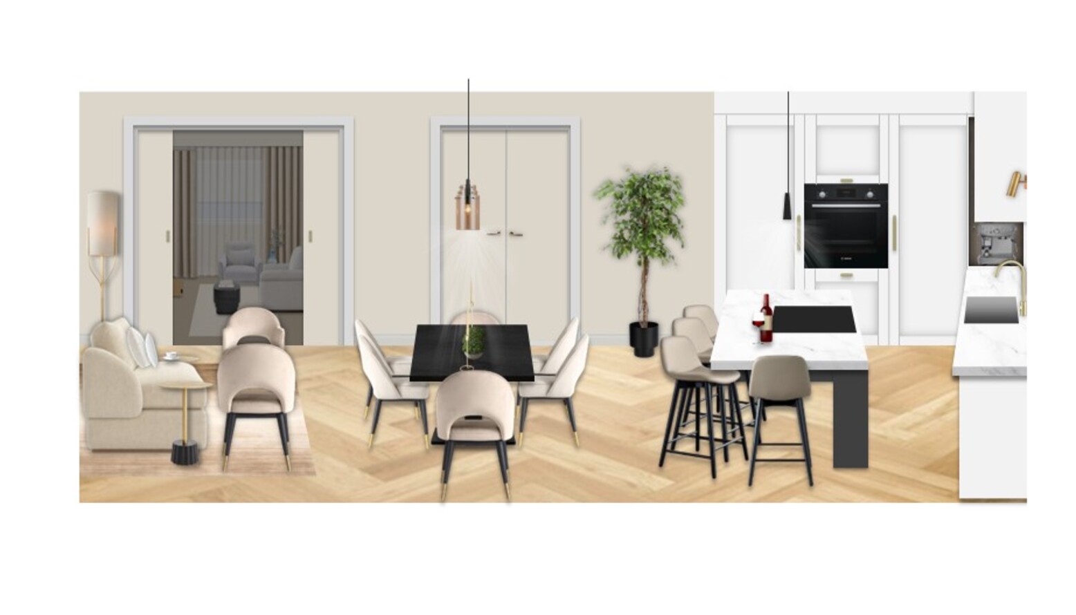 Check out this room design for our client complete with 3D visuals and floorplan.