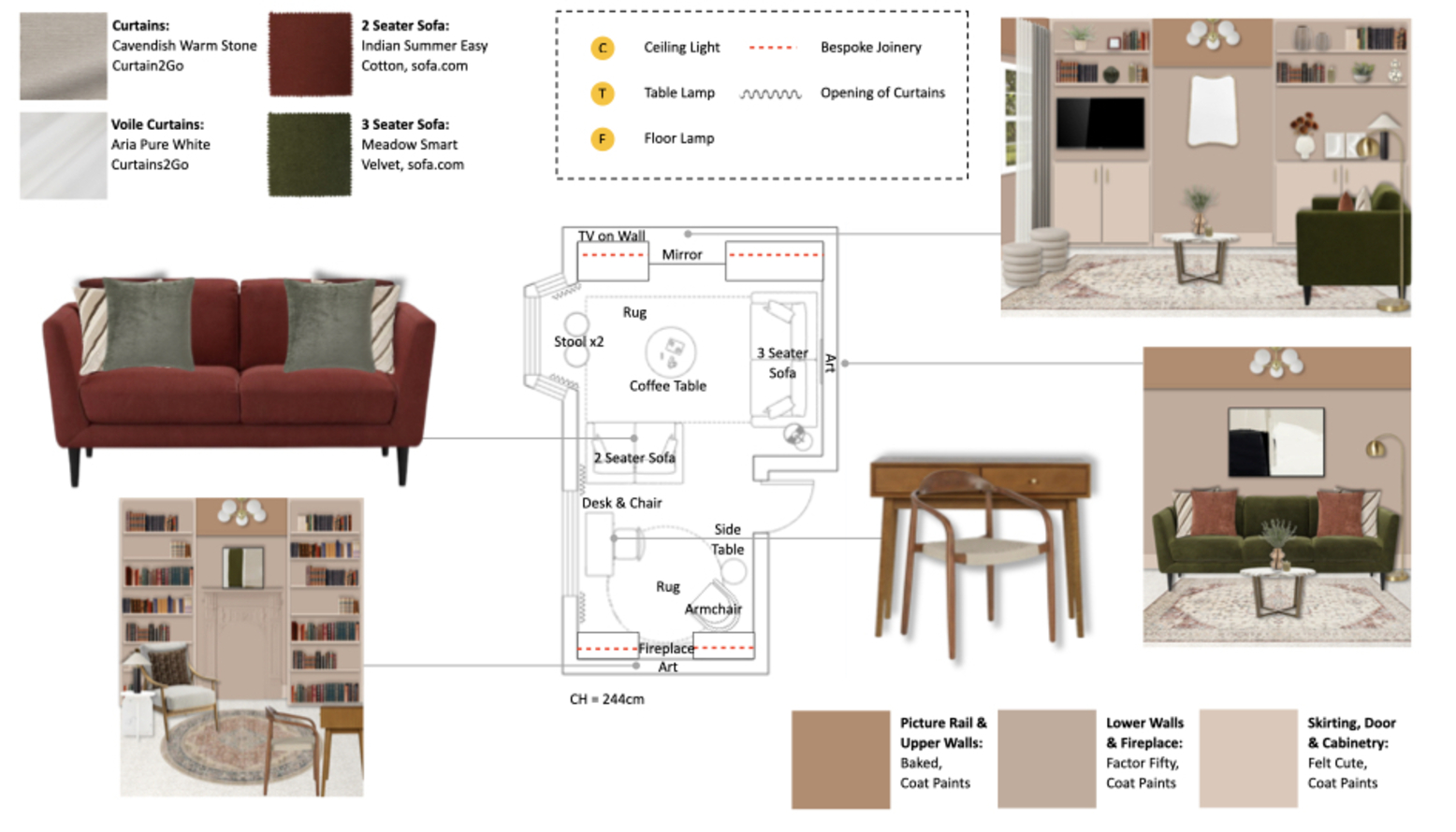 I have included some great paint colour suggestions for your room design with handy links so you can order any samples you want and then your chosen paint directly from the retailer when you are ready. It’s always best to use the retailer's paint calculator, or your decorator's estimate for paint quantity.