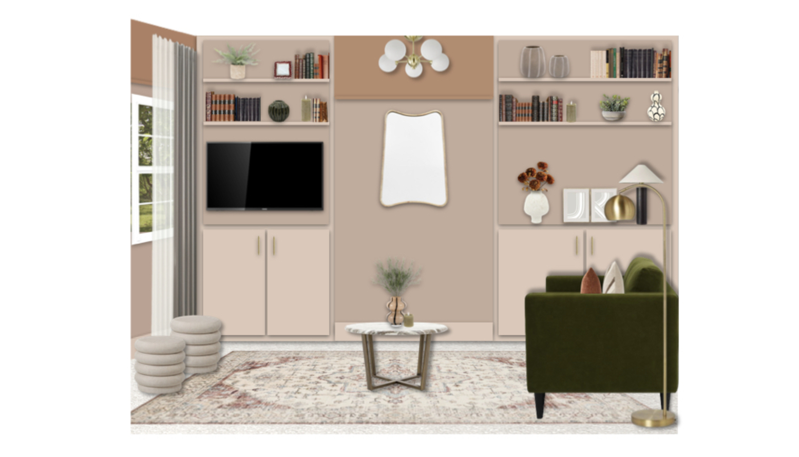 I’m delighted to share your final room design and product suggestions. Don’t forget to click on the video under your visuals to watch your virtual design presentation!