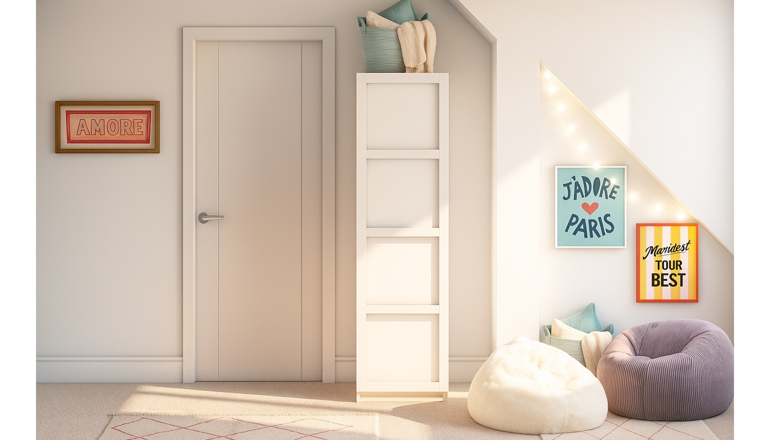 Additional touches include playful string fairy lights and a storage basket, offering a perfect mix of style and functionality that makes this space both relaxing and inspirational.