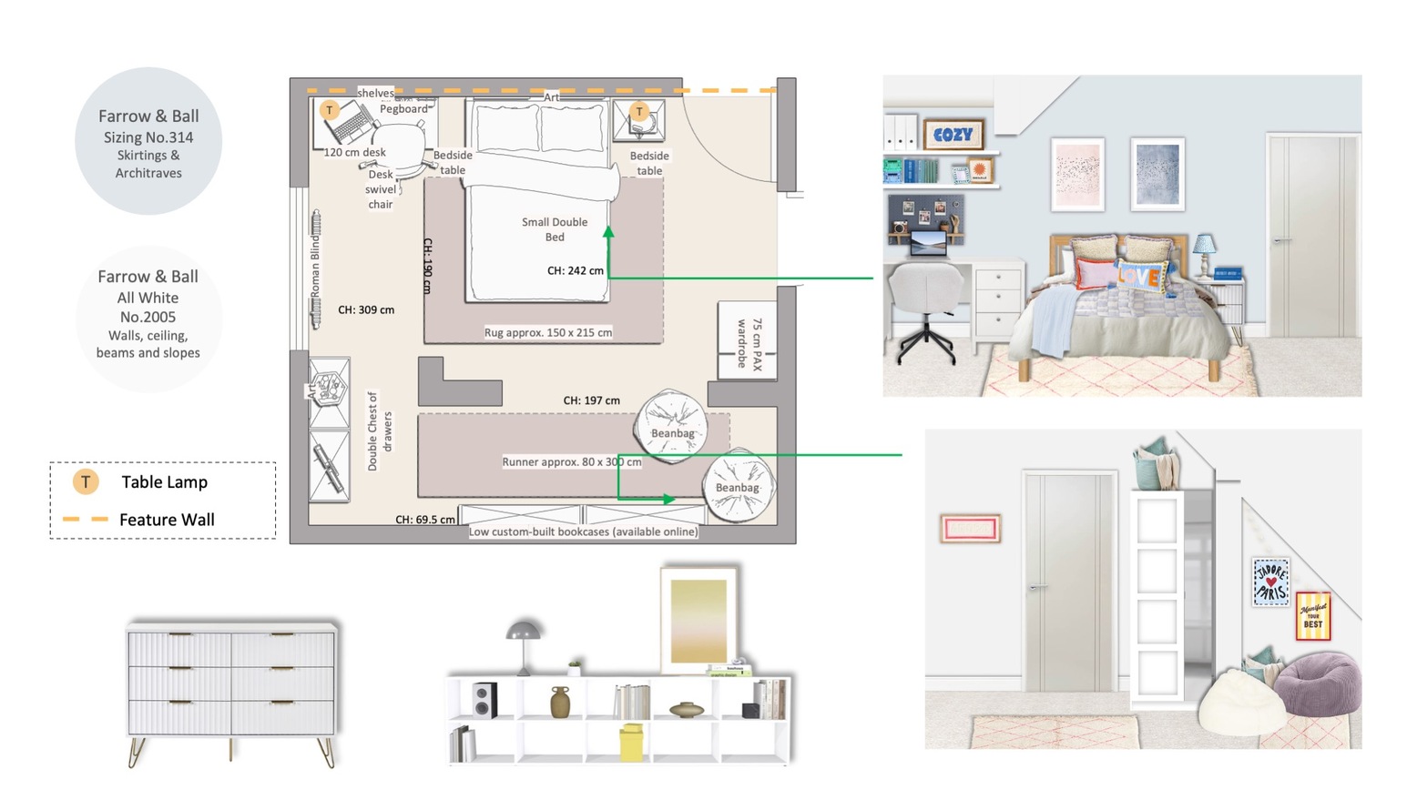 Budget Notes: The overall room design has been pulled together with your budget in mind, however, I have also dropped in a few special pieces that you may want to invest in, as I believe this could bring an additional wow factor!
