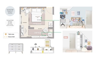 Wall Mounted Furniture & Shelving: As per the agreed layout, I have included some great wall-mounted furniture/shelving options in your room. Please note that different wall materials require different types of fixing devices. It is important to use suitable fixing devices for the walls in your home, and also to ensure that your wall construction can support the weight. If you are uncertain about what type of fixing devices to use or whether the wall construction is suitable, please contact your local hardware store or your contractor.