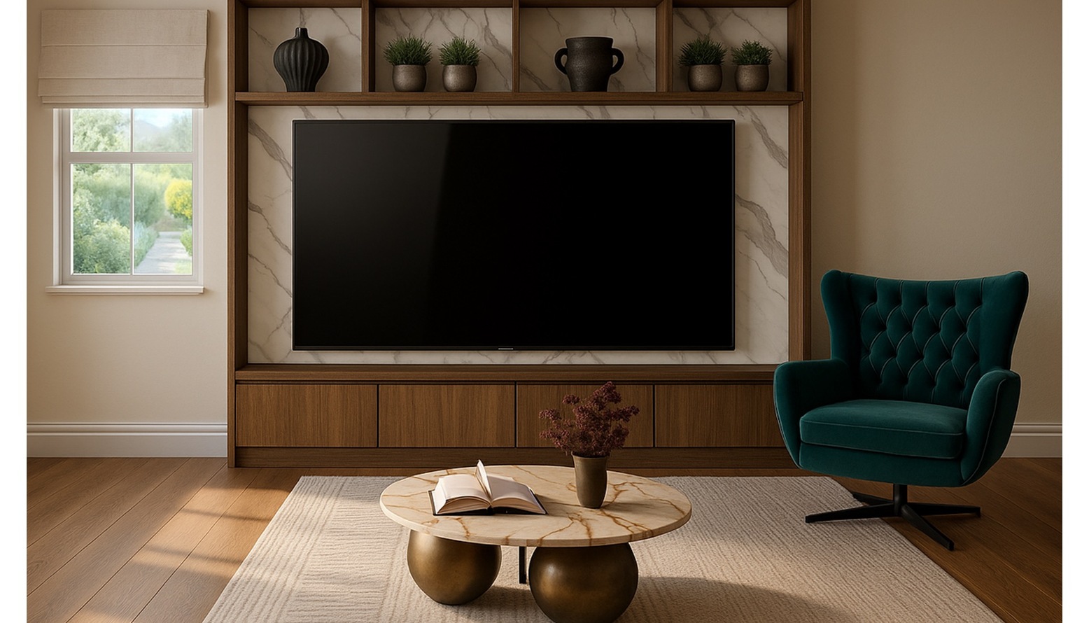 You’ll also want to consider where the natural light falls in the room. For example it will be no good positioning your TV on a wall that gets direct sunlight but this would be an ideal spot for an armchair to create a napping area looking out over the garden.