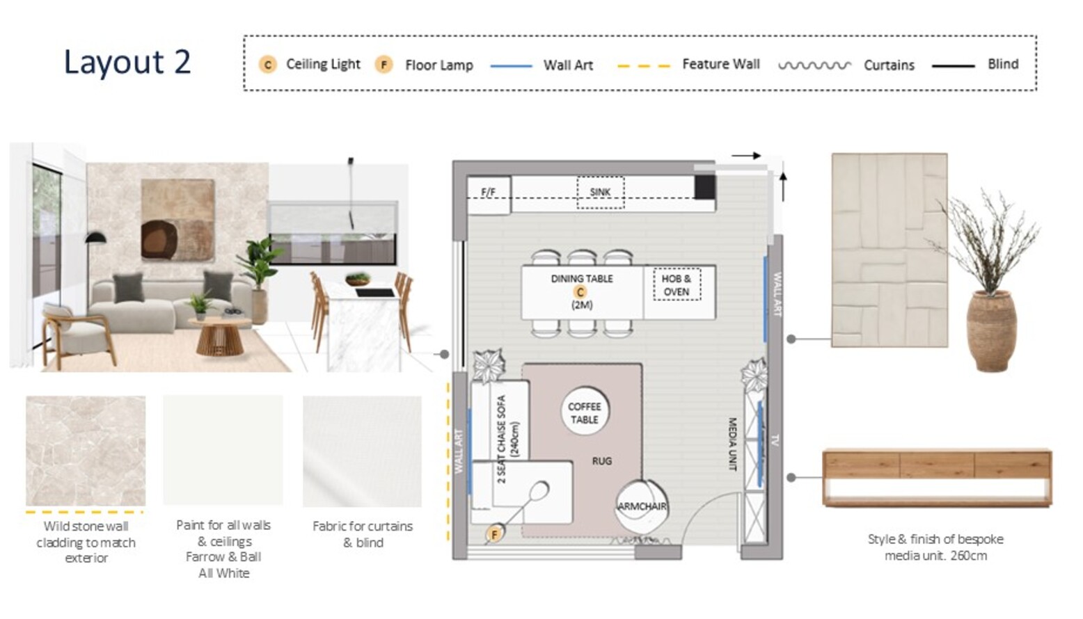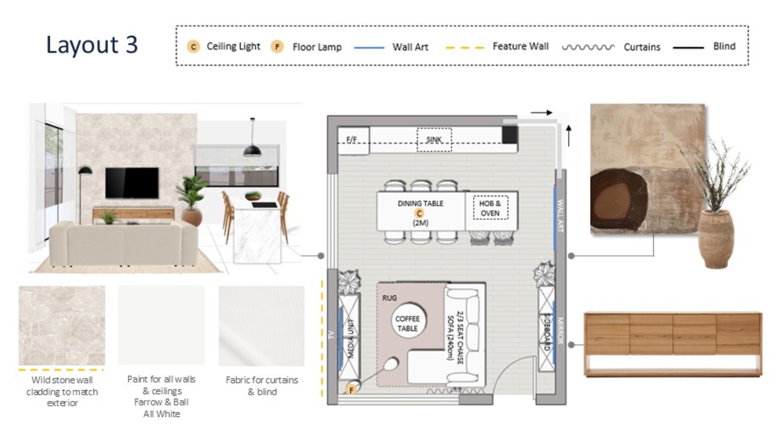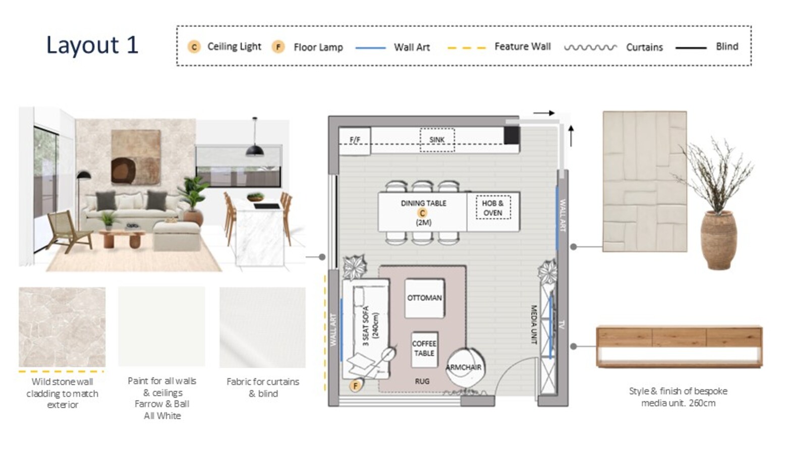 Check out this room design for our client complete with 3D visuals and floorplan.