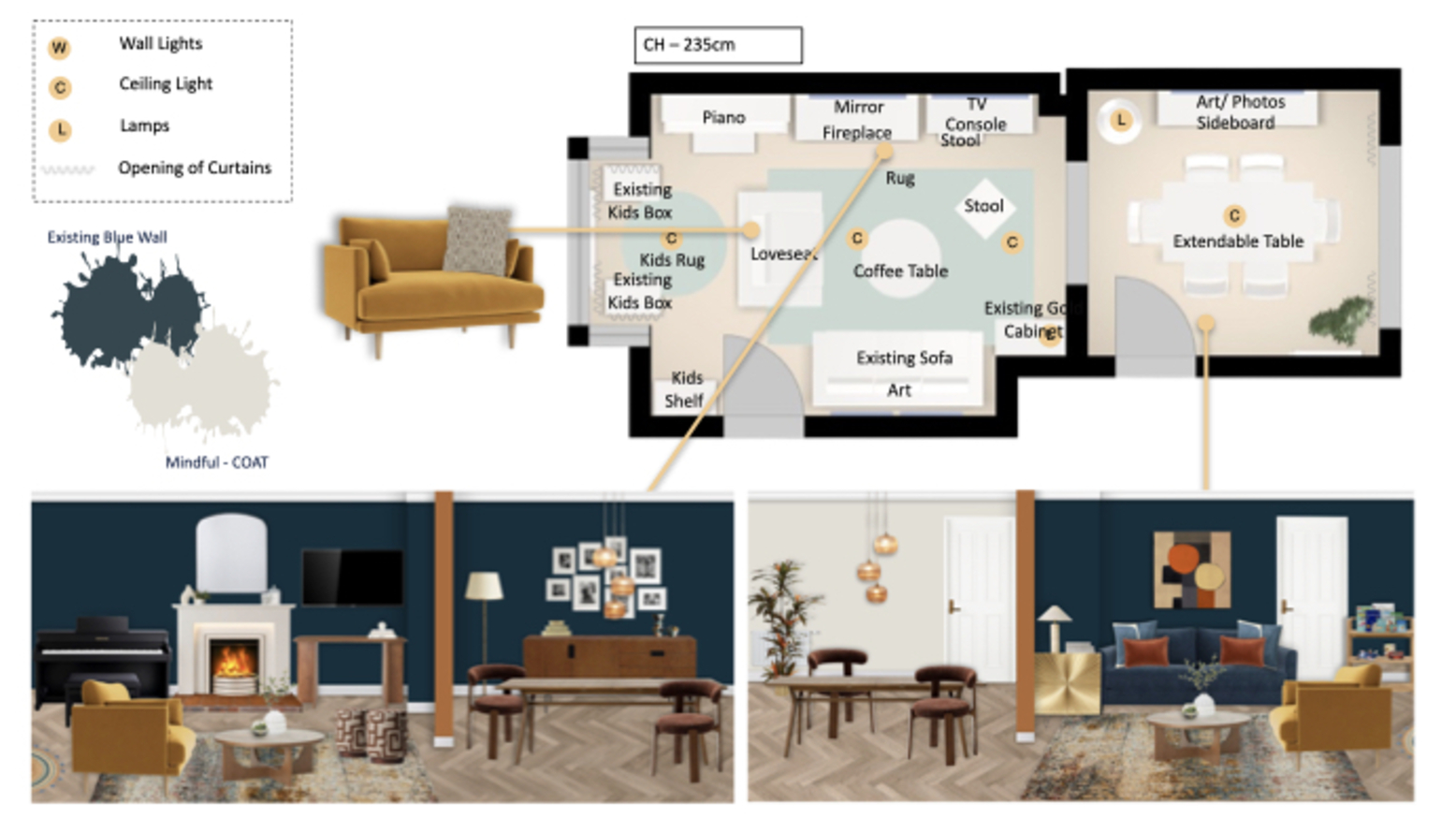 Check out this room design for our client complete with 3D visuals and floorplan.