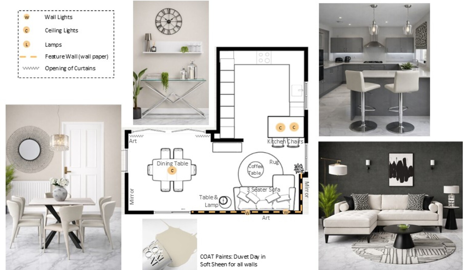 Check out this room design for our client complete with 3D visuals and floorplan.