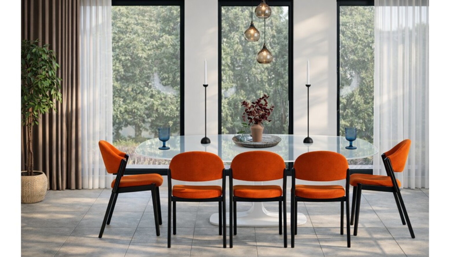 This triple-function living, dining, and kitchen room blends comfort and style, showcasing a harmonious arrangement of furnishings and decor.
