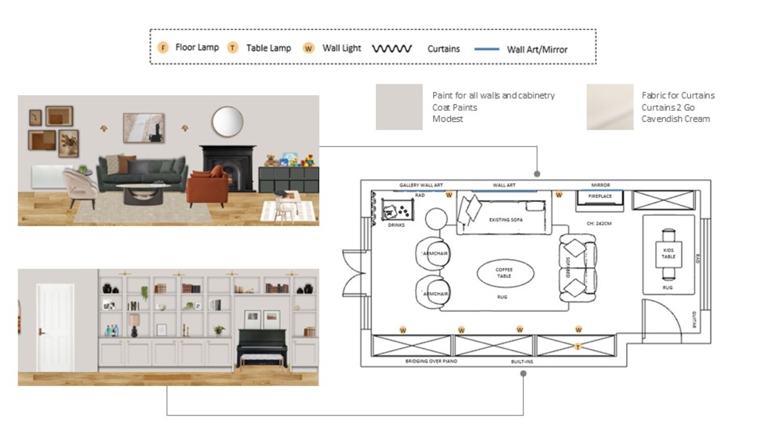 Check out this room design for our client complete with 3D visuals and floorplan.