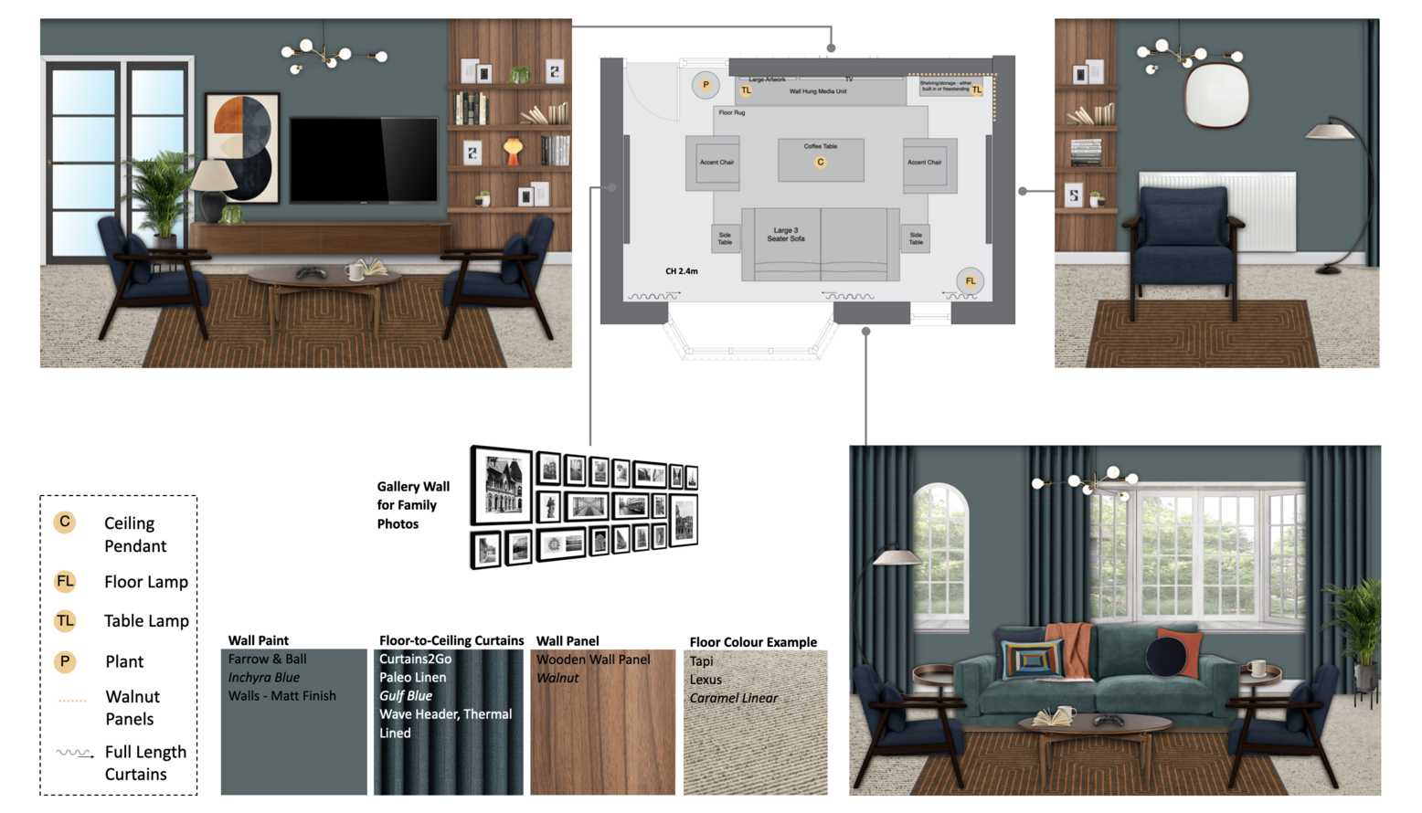 Check out this room design for our client complete with 3D visuals and floorplan.