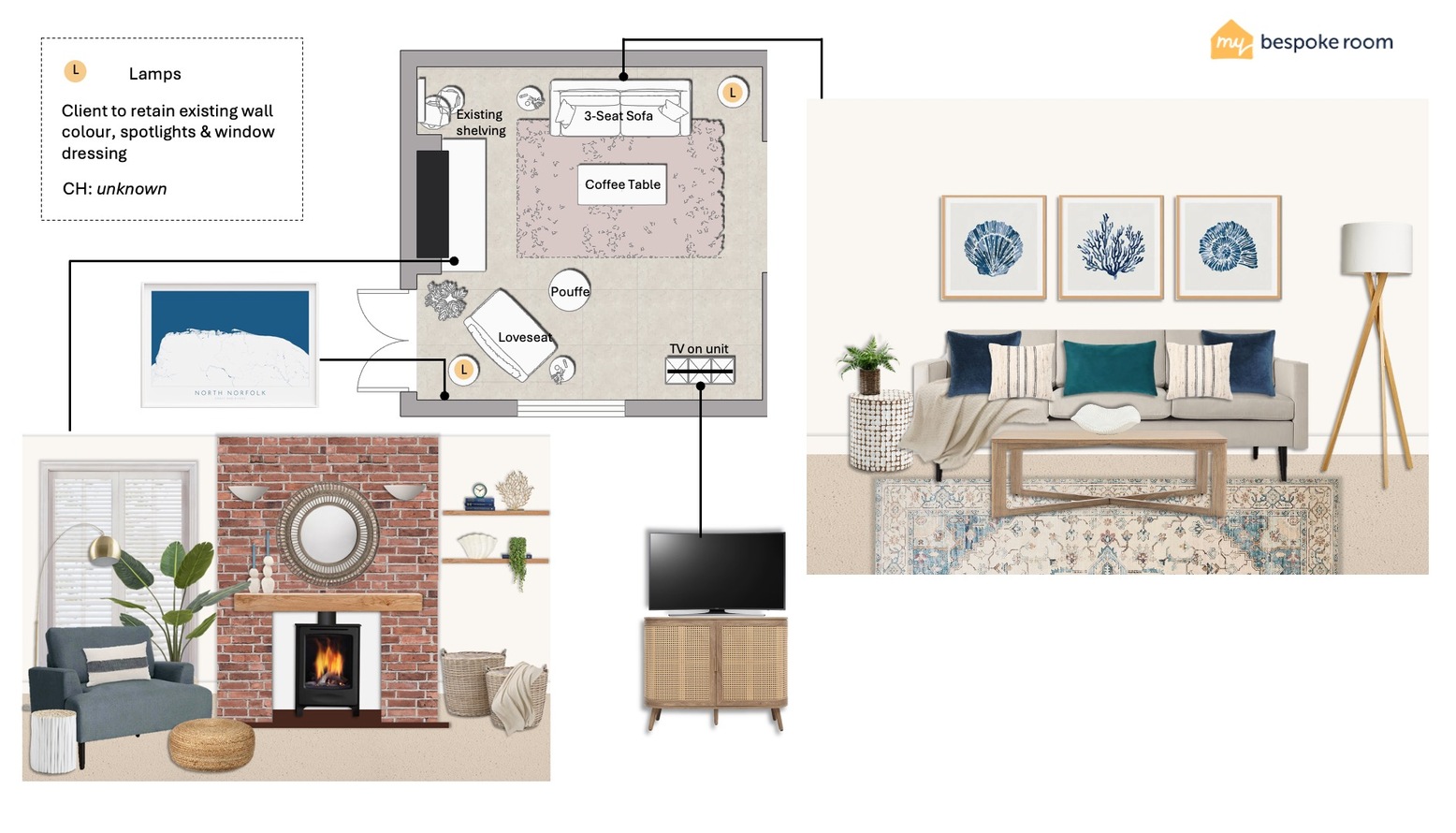 Check out this room design for our client complete with 3D visuals and floorplan.
