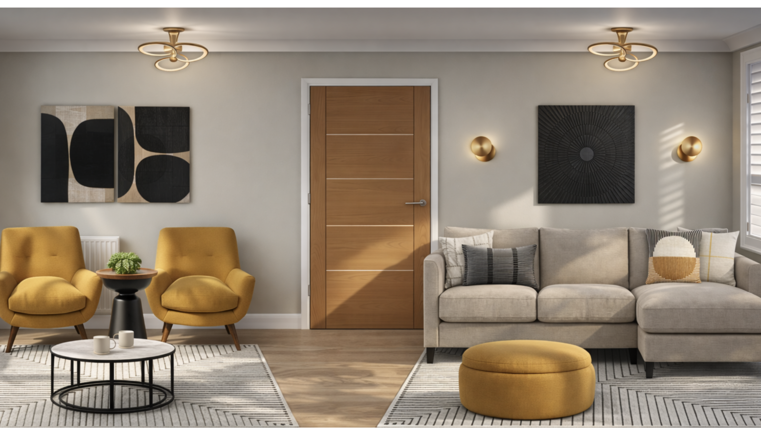 Ambient lighting is the best for living rooms as you typically want to feel calm and relaxed when you’re in them.
