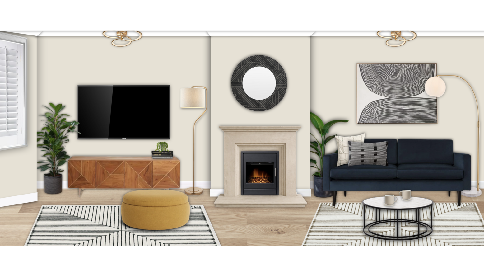 Now that you have your living room layout you can begin to work out how you want to feel in the space. Do you want to feel warm and snug? Perhaps you want more of a luxe look to impress guests for entertaining? These questions will help you work out your living room design direction.