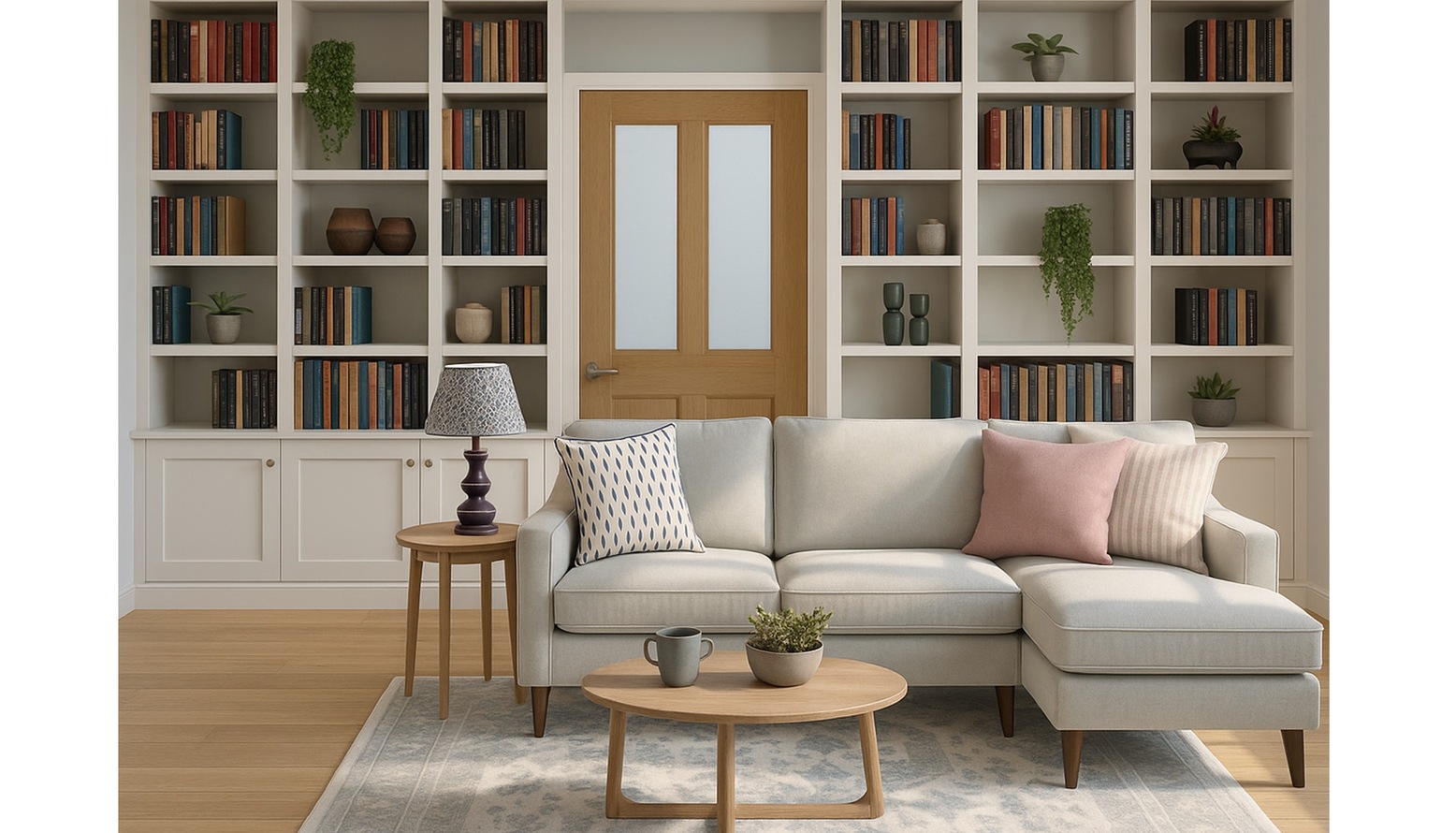 However if you’d like a more contemporary and minimalist living room then we’d advise investing in built in bespoke furniture. That way you can sweep all the clutter away in the cupboards and out of sight!
