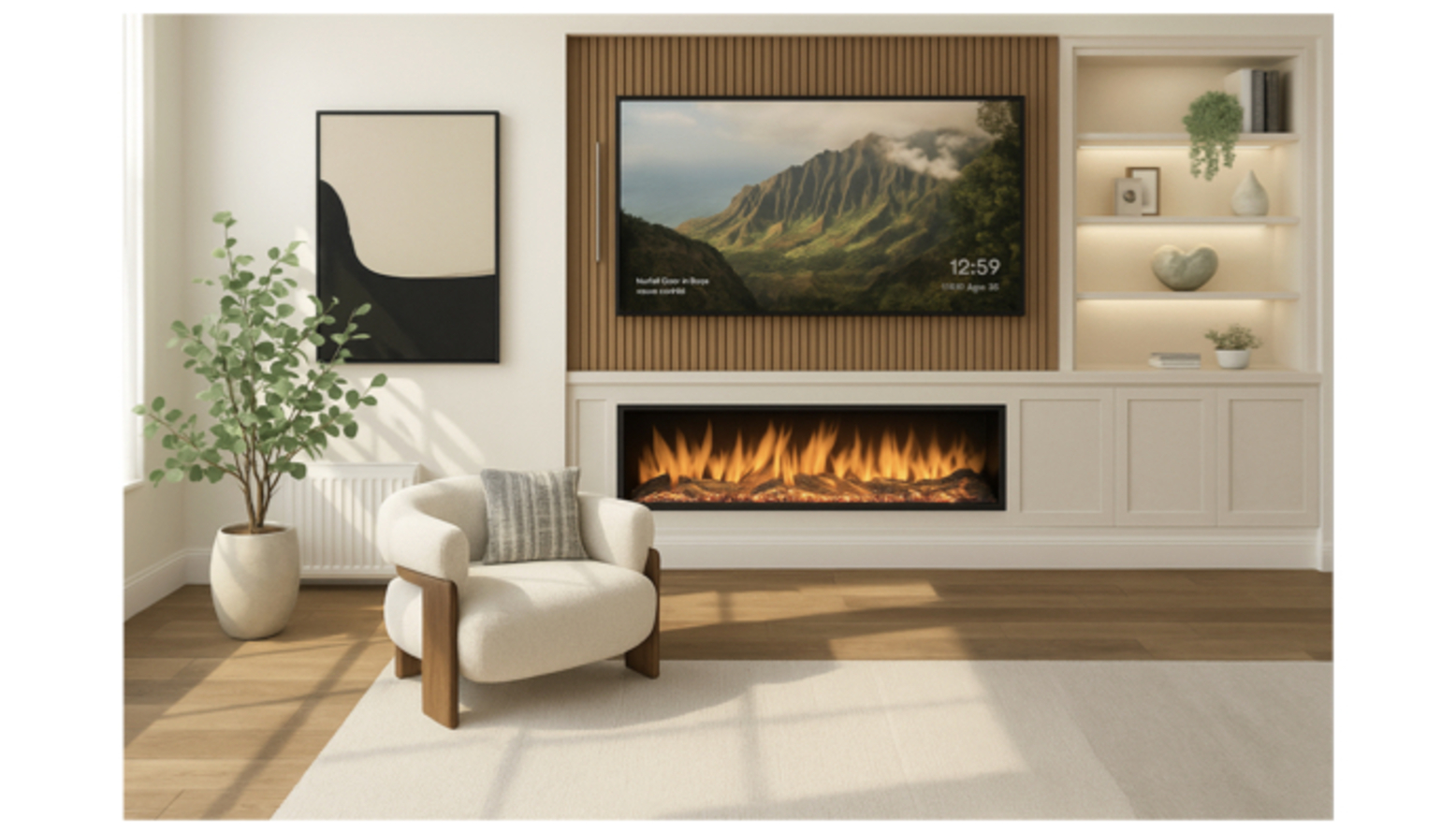 Completing the space is a soft Wefty Wool Blanket in Chalk, ready for cozy evenings. This living room design harmonizes comfort, style, and functionality, making it an ideal gathering space.