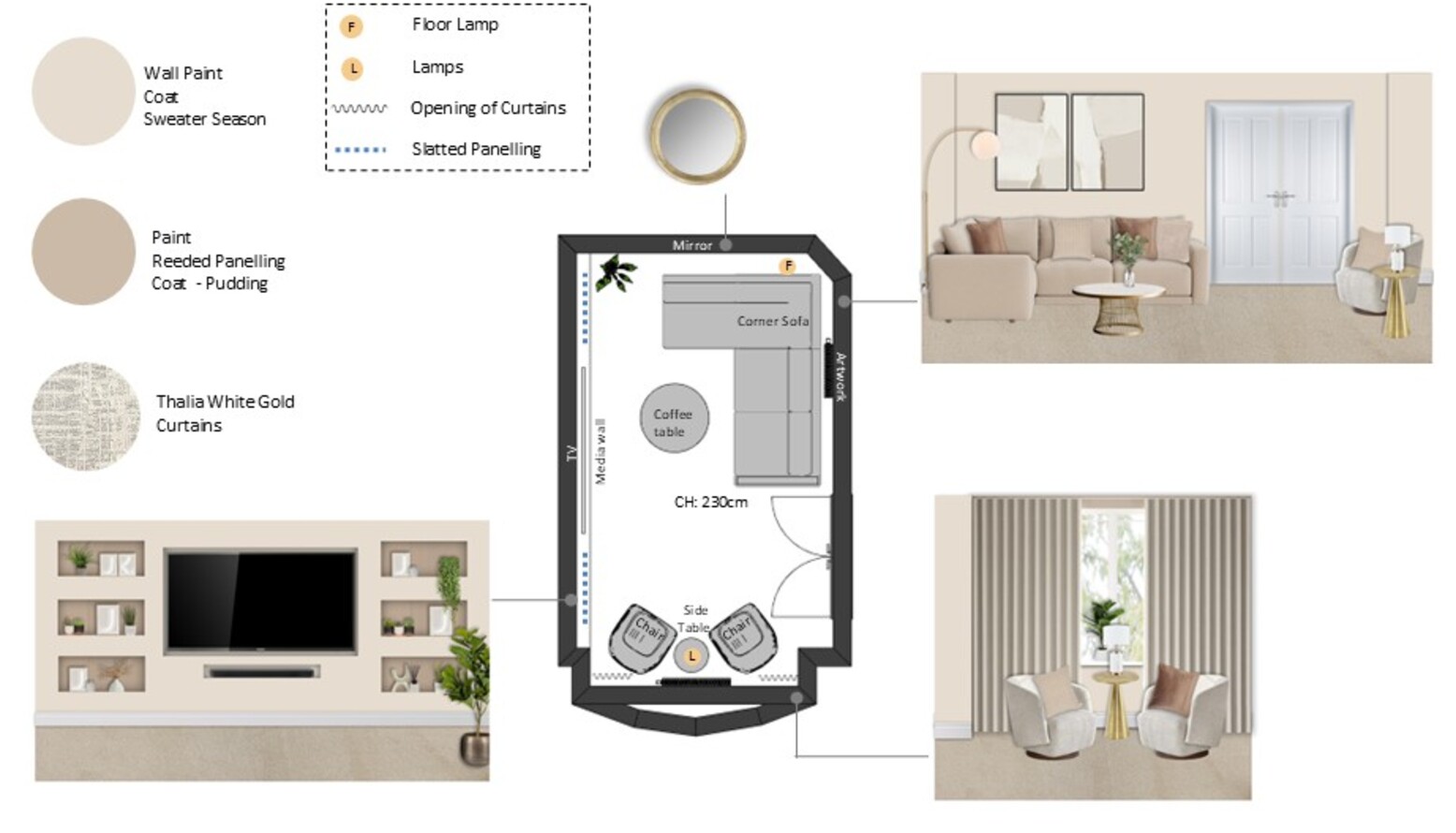 Check out this room design for our client complete with 3D visuals and floorplan.