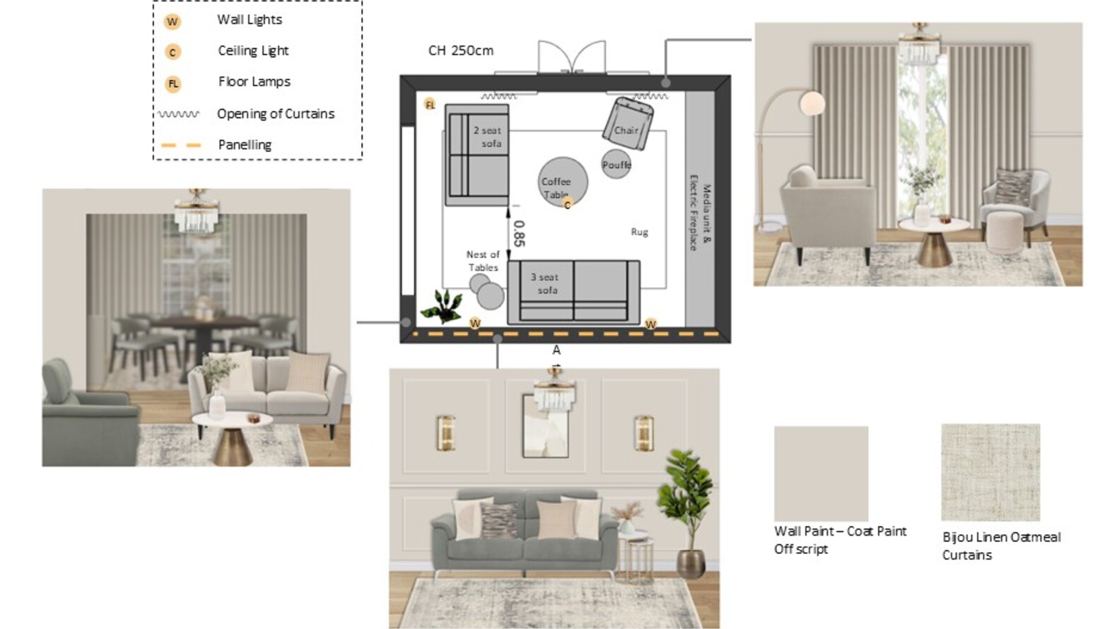Check out this room design for our client complete with 3D visuals and floorplan.