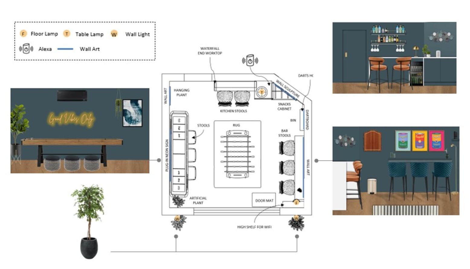 Check out this room design for our client complete with 3D visuals and floorplan.