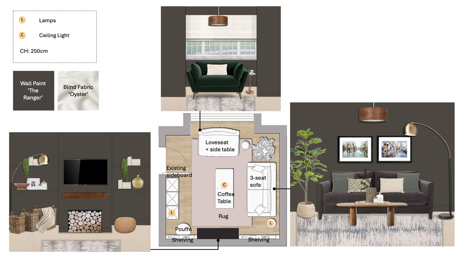 Check out this room design for our client complete with 3D visuals and floorplan.