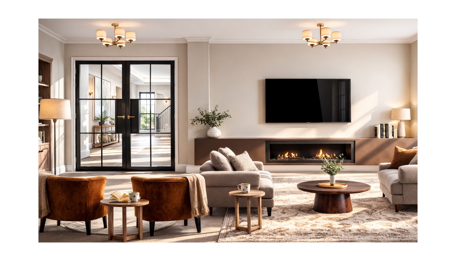Ambient lighting is the best for living rooms as you typically want to feel calm and relaxed when you’re in them.