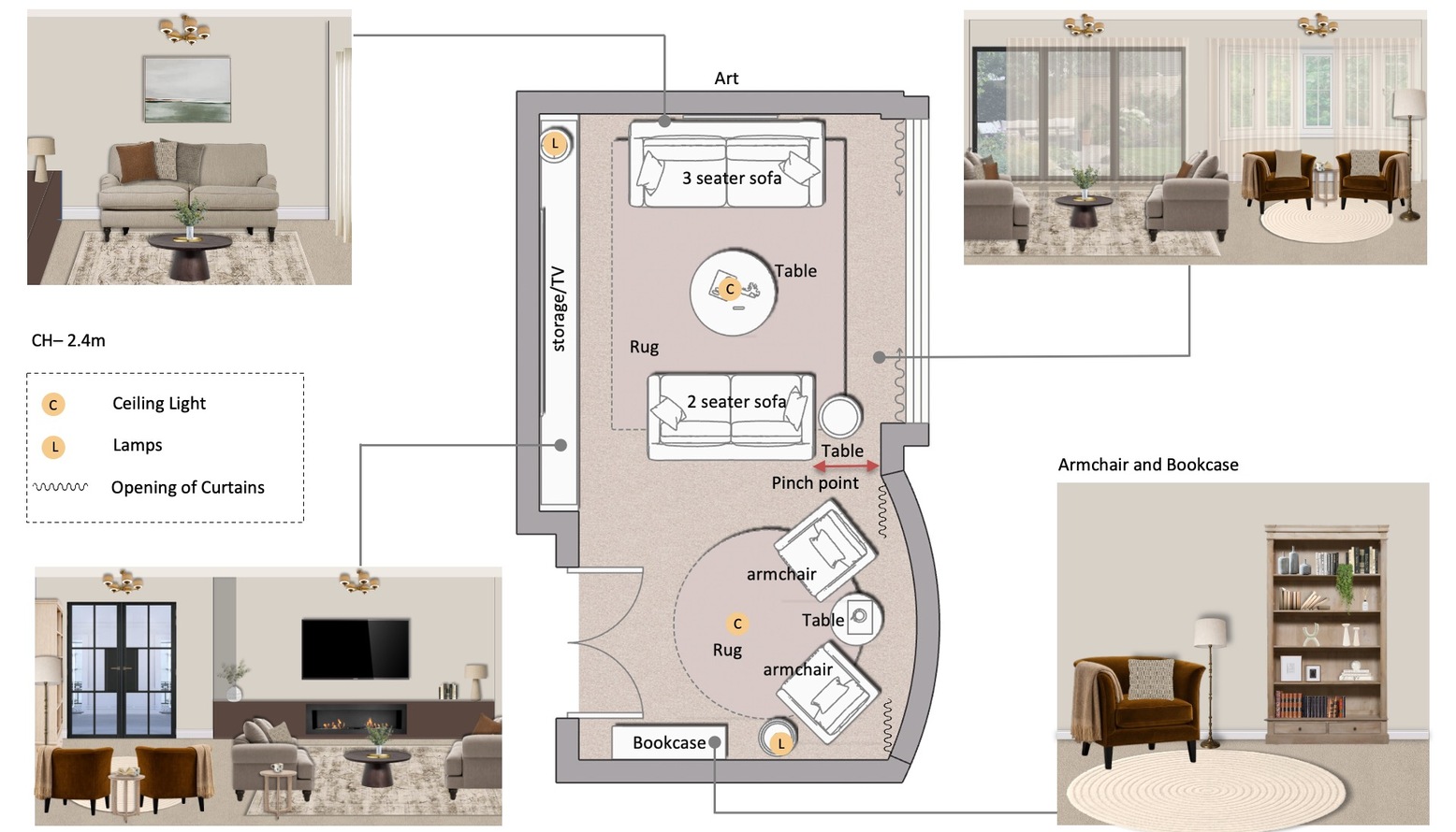 Check out this room design for our client complete with 3D visuals and floorplan.