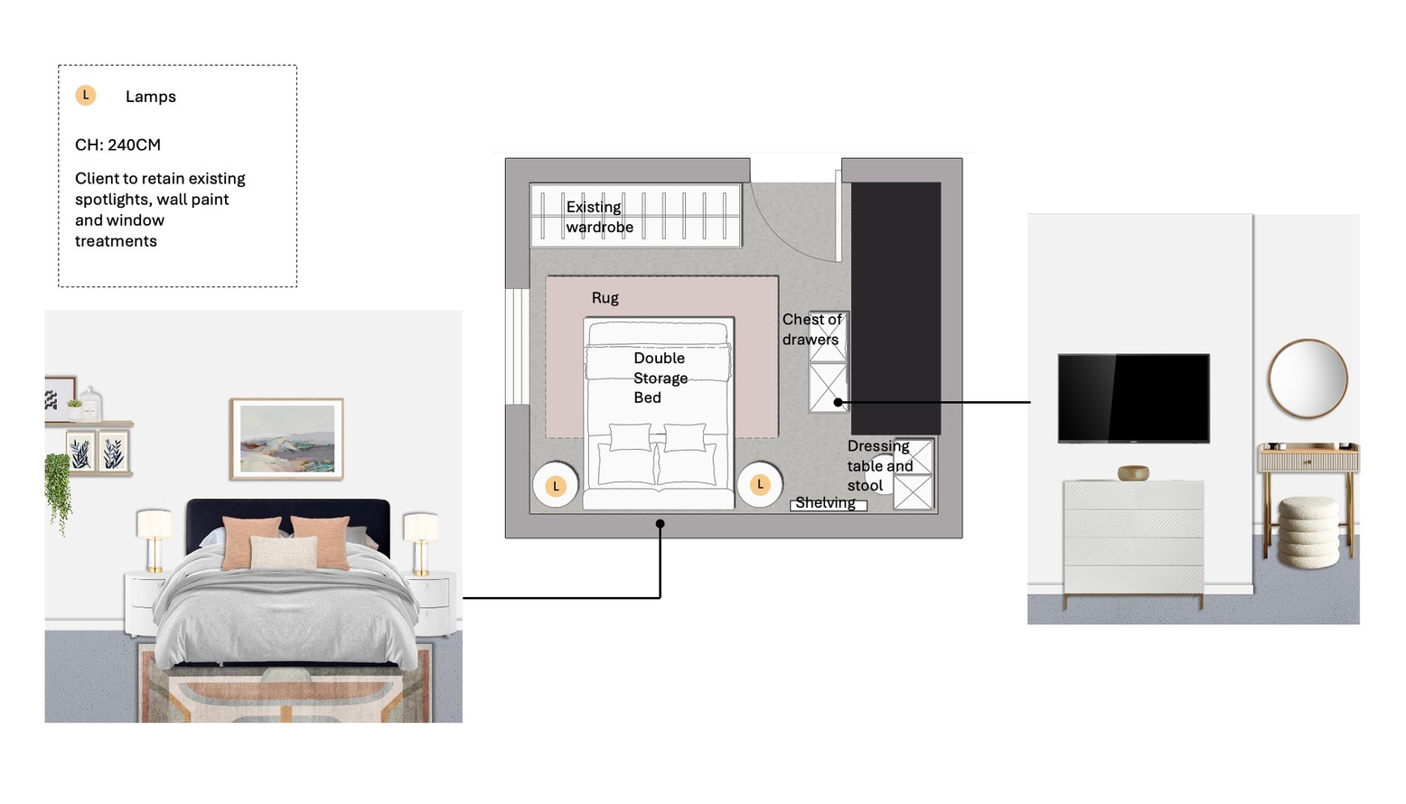 I have specified all items based on the dimensions and information you provided in your brief but it’s always worth double checking that you’re happy with the size of larger furniture items/light fittings before placing your order. Also that you have the appropriate delivery access into your property.