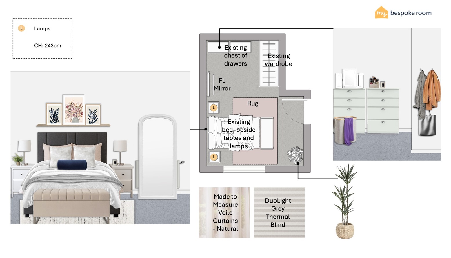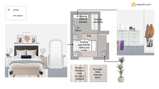 Additional decorative elements, like a scented candle, complete the serene aesthetic, making this bedroom a perfect retreat for relaxation.