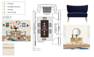 As the outlets are not directly above the dining table, I have included ceiling hooks to redivert so the ceiling lights can sit central above the dining table as shown in the visuals.