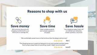 I’m delighted to share your final room design and product suggestions. Don’t forget to click on the video under your moodboard to watch your virtual design presentation!