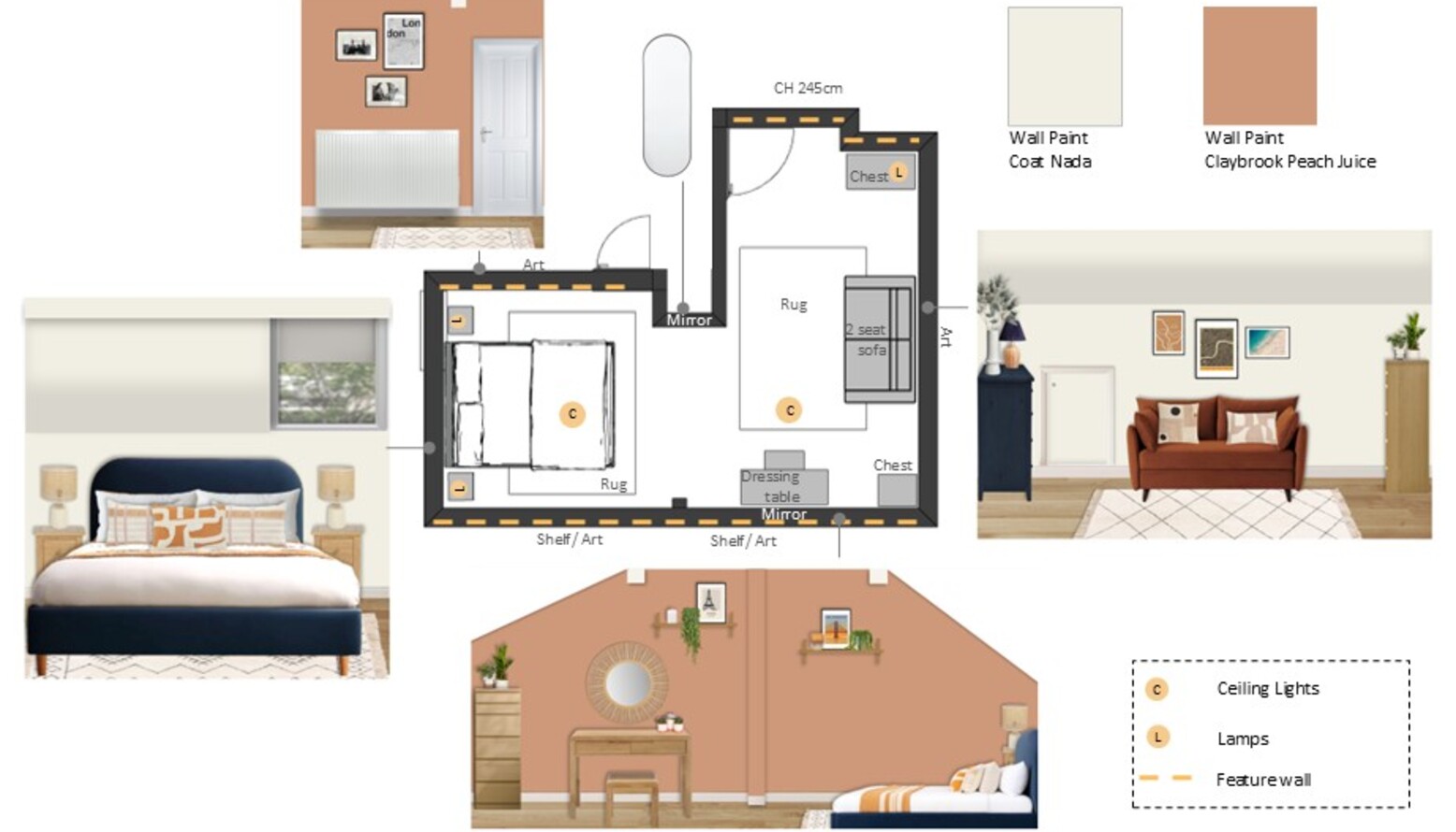 I have included some great paint colour suggestions for your room design with handy links so you can order any samples you want and then your chosen paint directly from the retailer when you are ready. It’s always best to use the retailer's paint calculator, or your decorator's estimate for paint quantity.