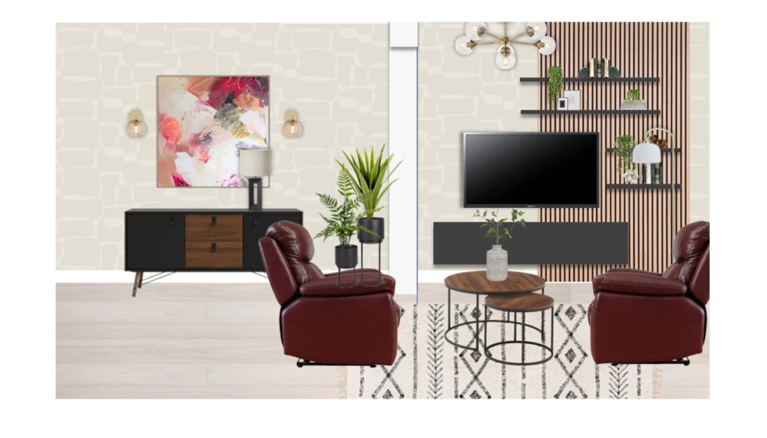 I’m delighted to share your final room design and product suggestions. Don’t forget to click on the video under your moodboard to watch your virtual design presentation!