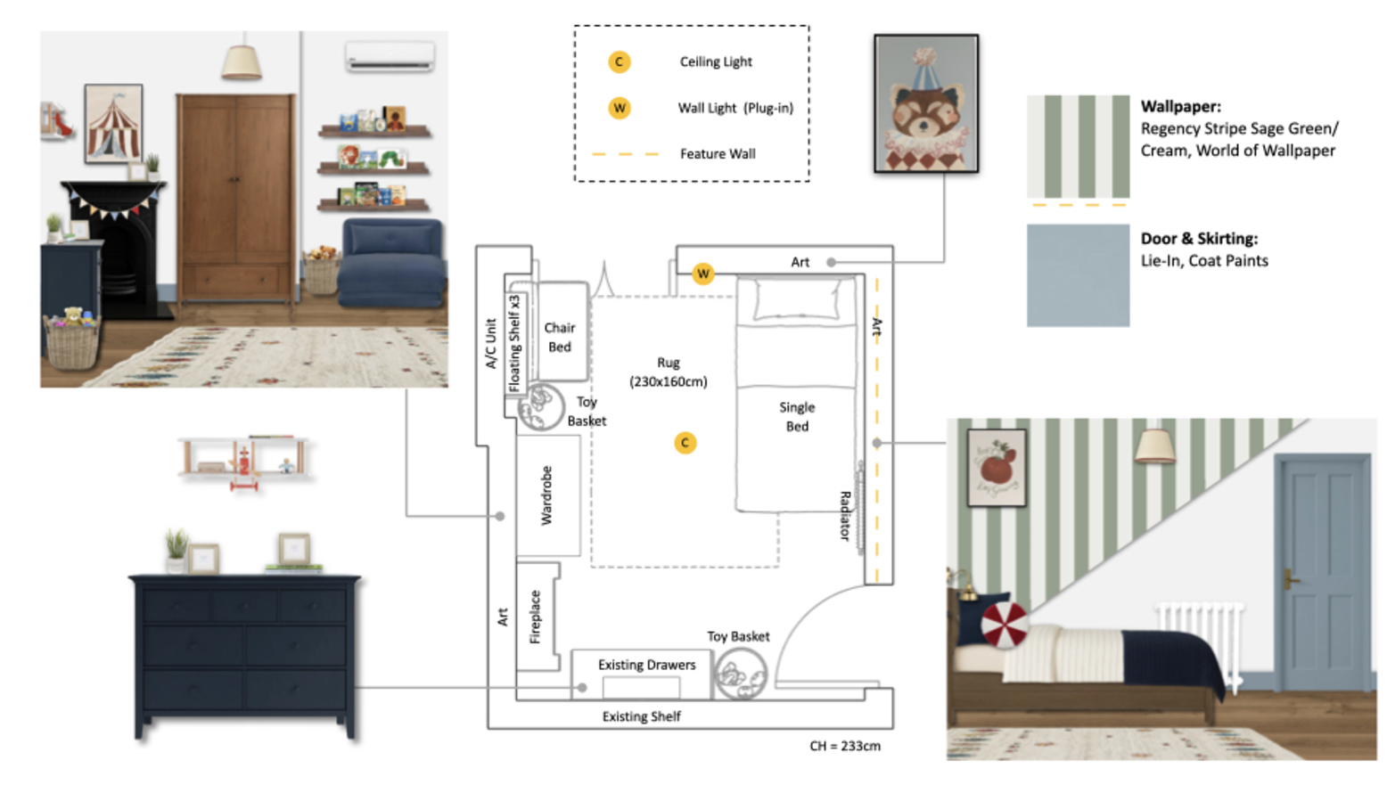 Check out this room design for our client complete with 3D visuals and floorplan.