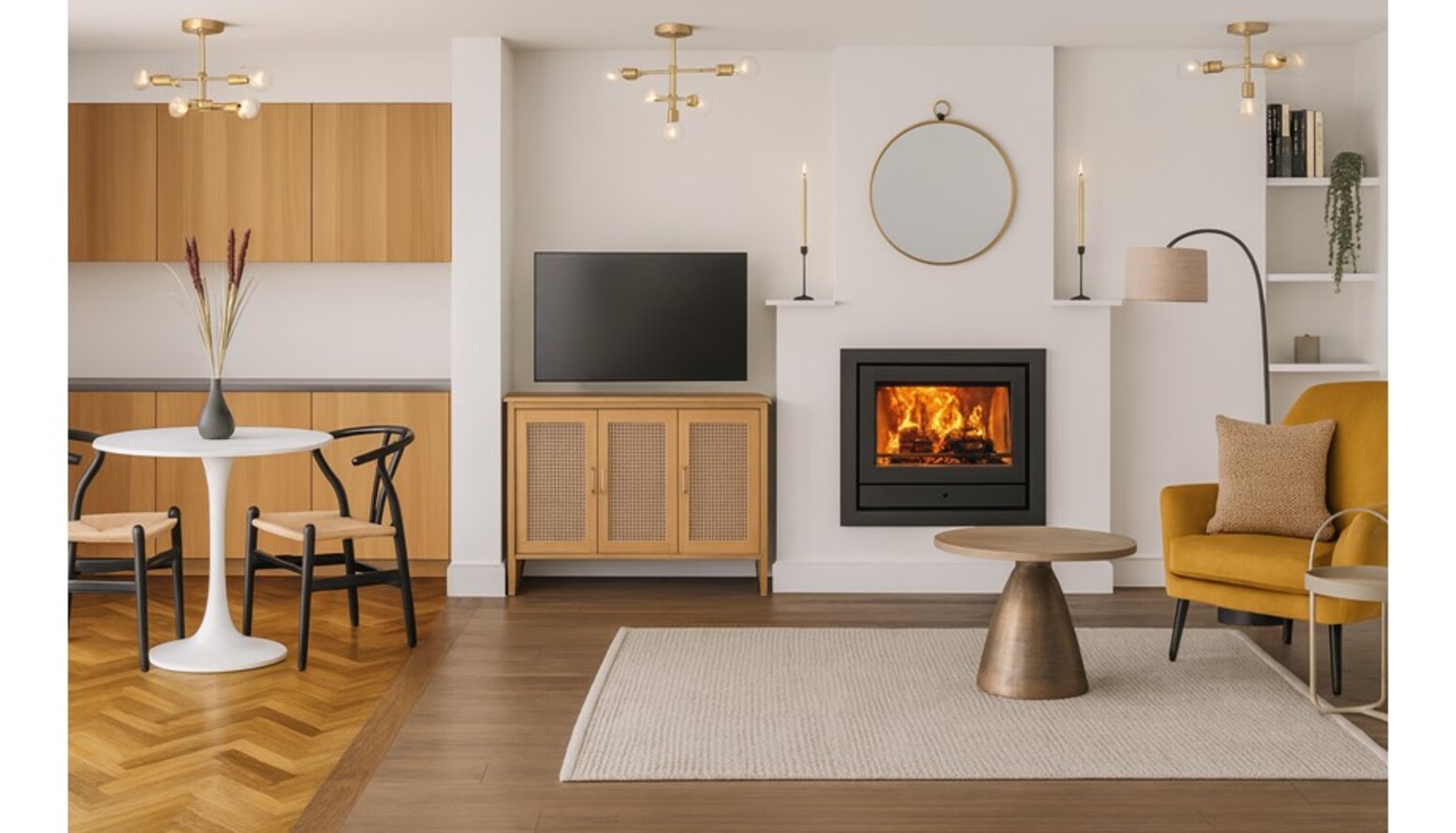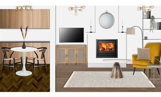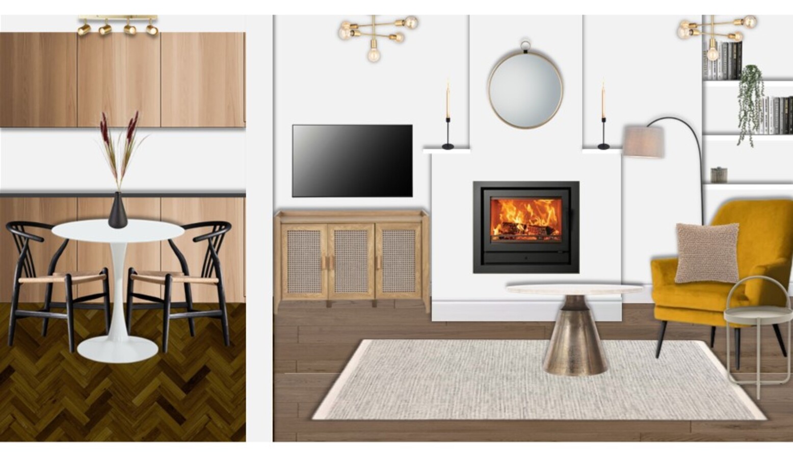 The dual function room serves as both a living and dining area, exuding a modern yet inviting atmosphere.