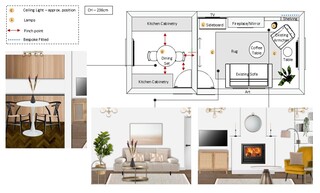 To enhance the dining experience, a white dining table is positioned elegantly, accompanied by stylish black dining chairs that add an element of sophistication. Alternatively, the option for a round dining table offers versatility in design.