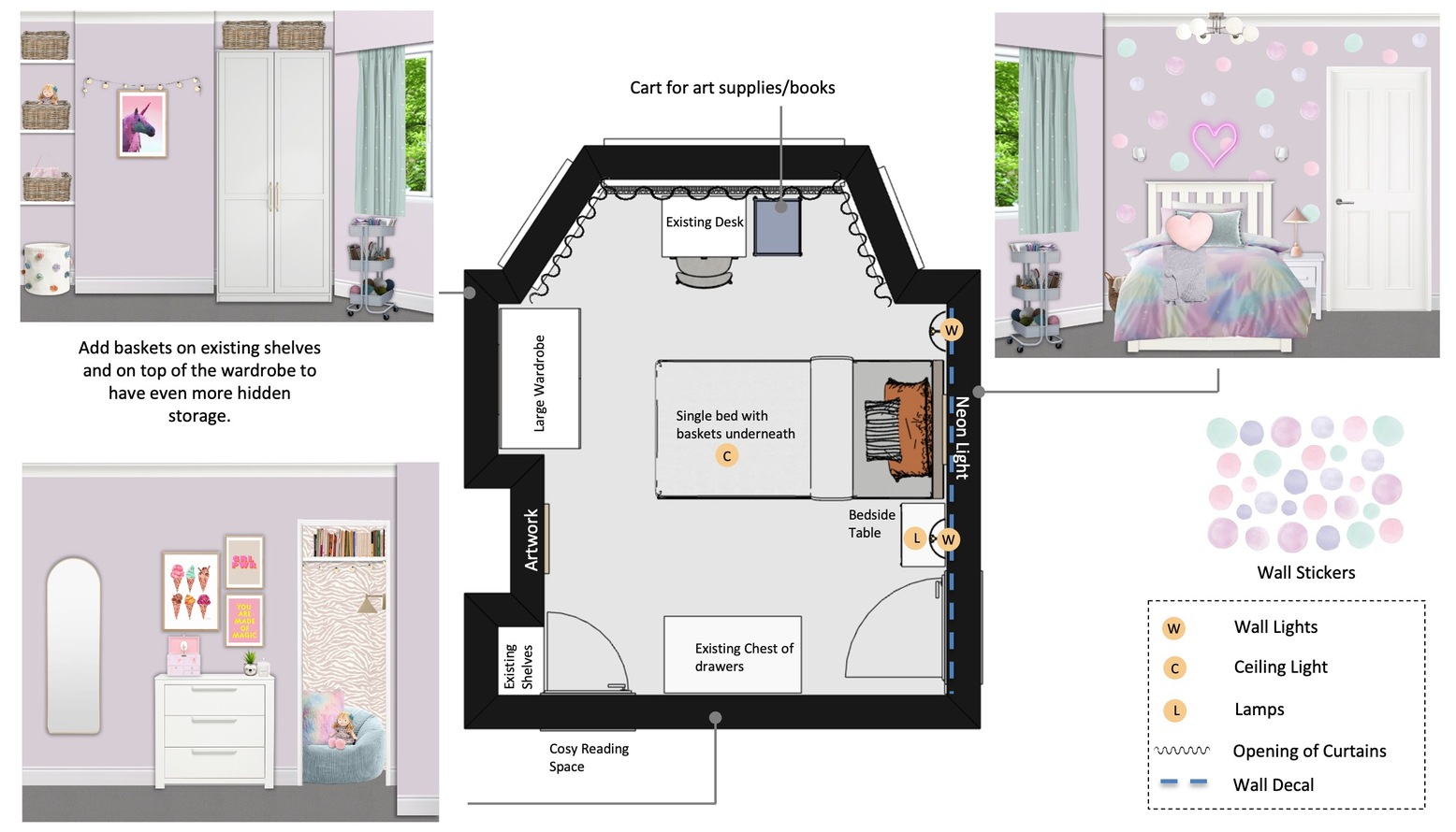 Check out this room design for our client complete with 3D visuals and floorplan.