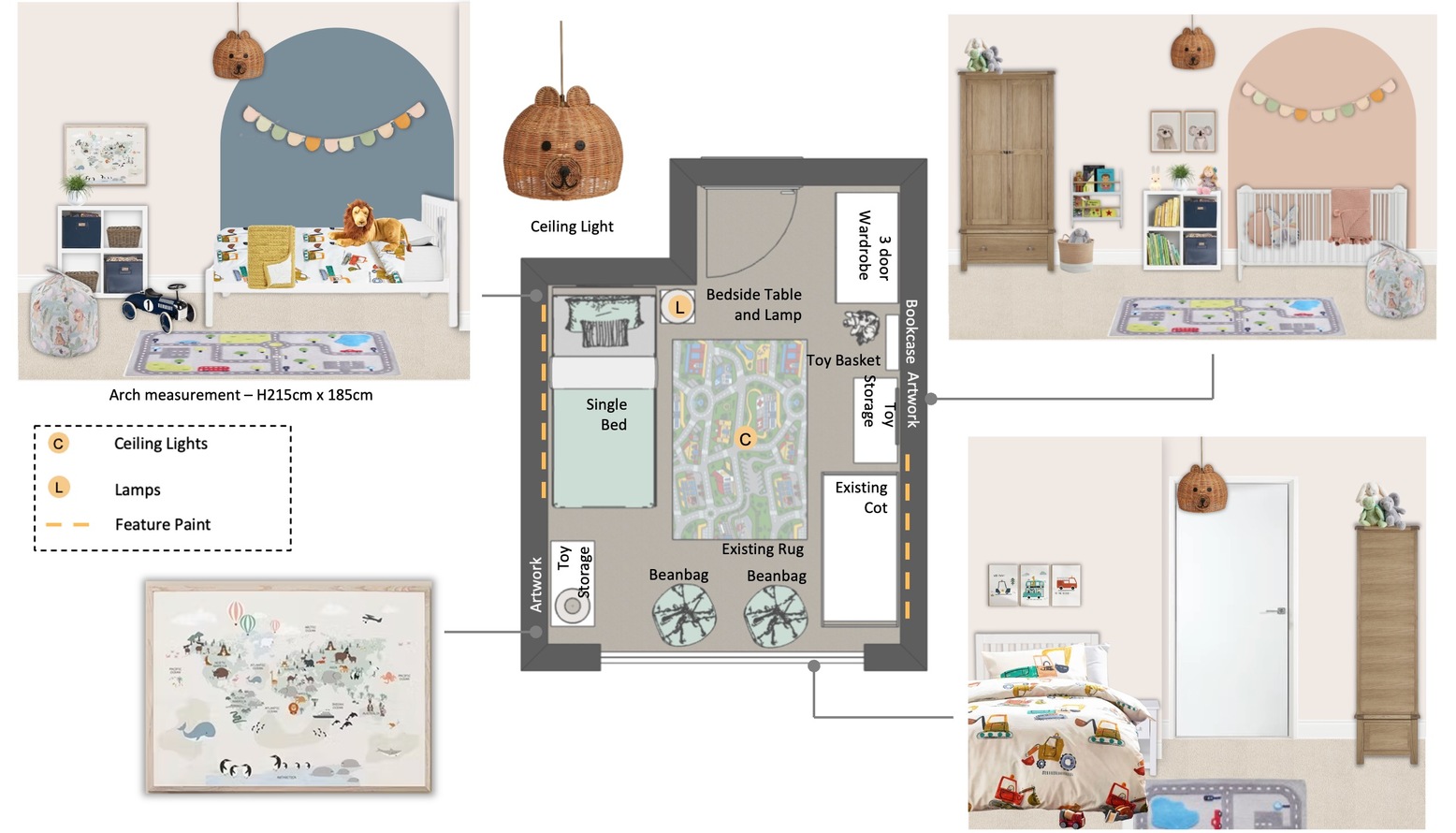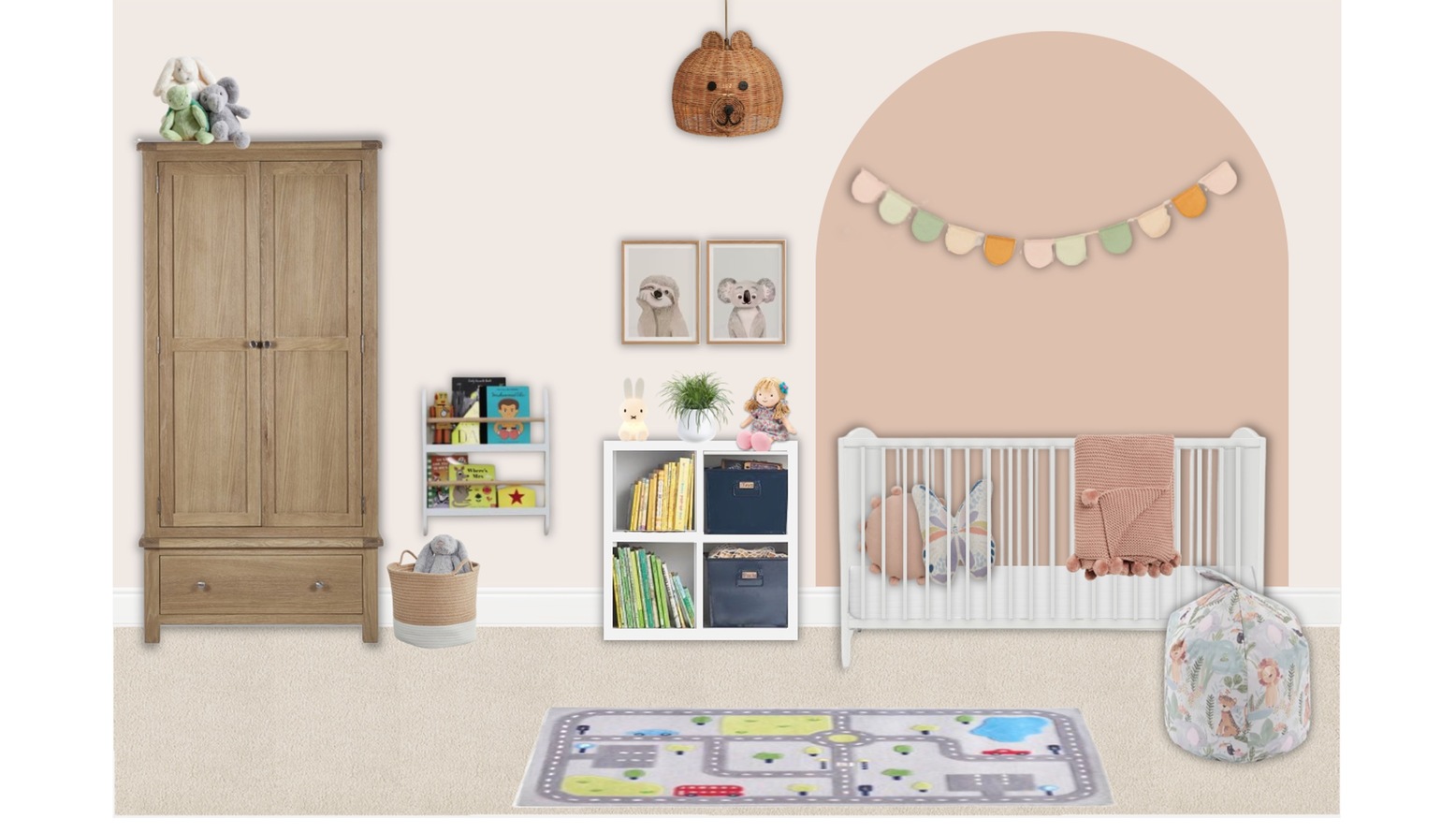 I have included some lovely finishing touches for your child’s bedroom, with the view to designing a space in which your child can grow. Please note that with certain products the manufacturer's recommendation is for use by children aged 3 years or above. This should be noted in the product description however if you have any questions the shopping support team will be happy to help.