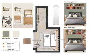 As per agreed layout, I have included some great wall mounted furniture/shelving options in your room. Please note that different wall materials require different types of fixing devices. It is important to use suitable fixing devices for the walls in your home and also to ensure your walls construction can support the weight. If you are uncertain about what type of fixing devices to use or whether the wall construction is suitable, please contact your local hardware store or your contractor.