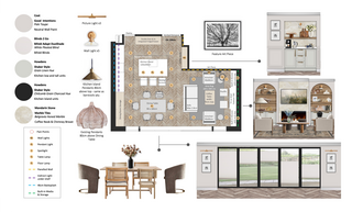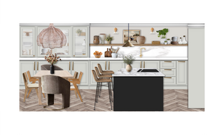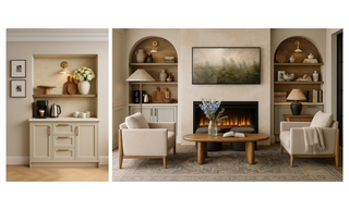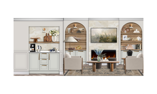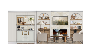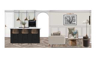 This tranquil triple-function room, designed as Tara's Serene Family Hub, blends comfort, style, and practicality. The space features a light and airy color palette that promotes relaxation.